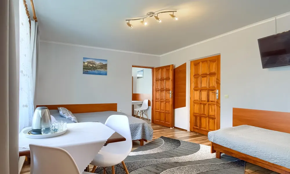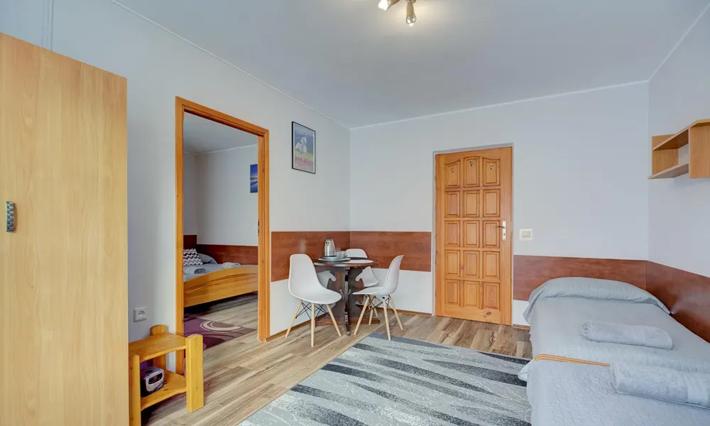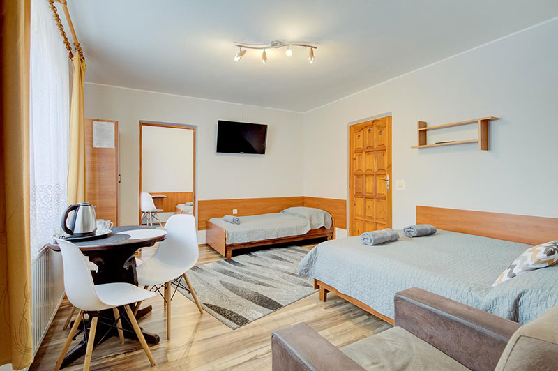 Do dyspozycji Gości pozostawiamy pokoje 2, 3, 4 osobowe z łazienkami oraz duże rodzinne pokoje typu studio 3+2 lub 2+2 z łazienkami, telewizorem LED 40'', radio, czajnik, Internet WiFi. Większość pokoi z balkonami.